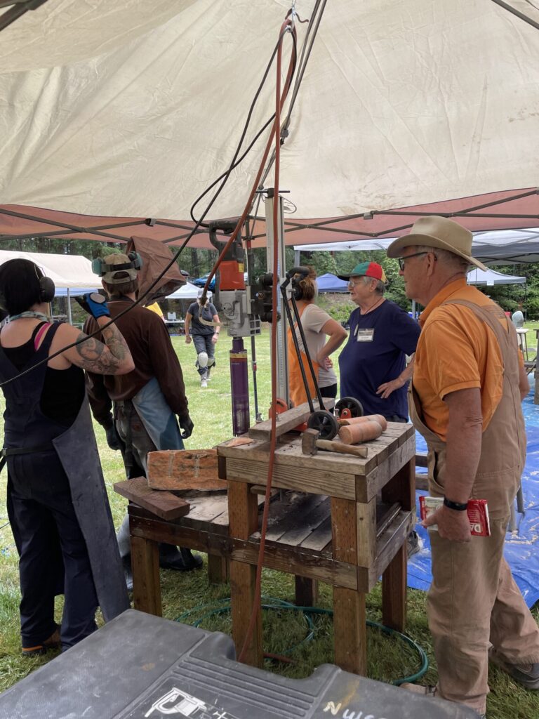Just returned last weekend from the 34th Annual NWSSA Sculpting Symposium. It was really great lots of hard work and I am completely exhausted but worked on a few pieces, made some earrings from Jade and learned about Shou Sugi Ban (basically got to play with fire to darken a wood base). Now that I’m back I feel like I’m missing it. Fortunately I’ve just signed on to join some amazing artists and friends in a studio adventure in Georgetown at Equinox Studios. It’s a bit of extra money but I think it’ll be a really great way to put more focus on sculpting and allow me the space to make a mess, which is the best part of course. I thought I’d share some pictures from the event. I did a little bit of swimming when the weather was warm and relaxed by the lake but for the most part played with some stones. I had a calcite butterfly I started a few years ago. Got some help from Jeremy and we sawed some good amount from the middle so I can now use a die grinder and angle grinder to thin it out and mount it on a nice black base I purchased.