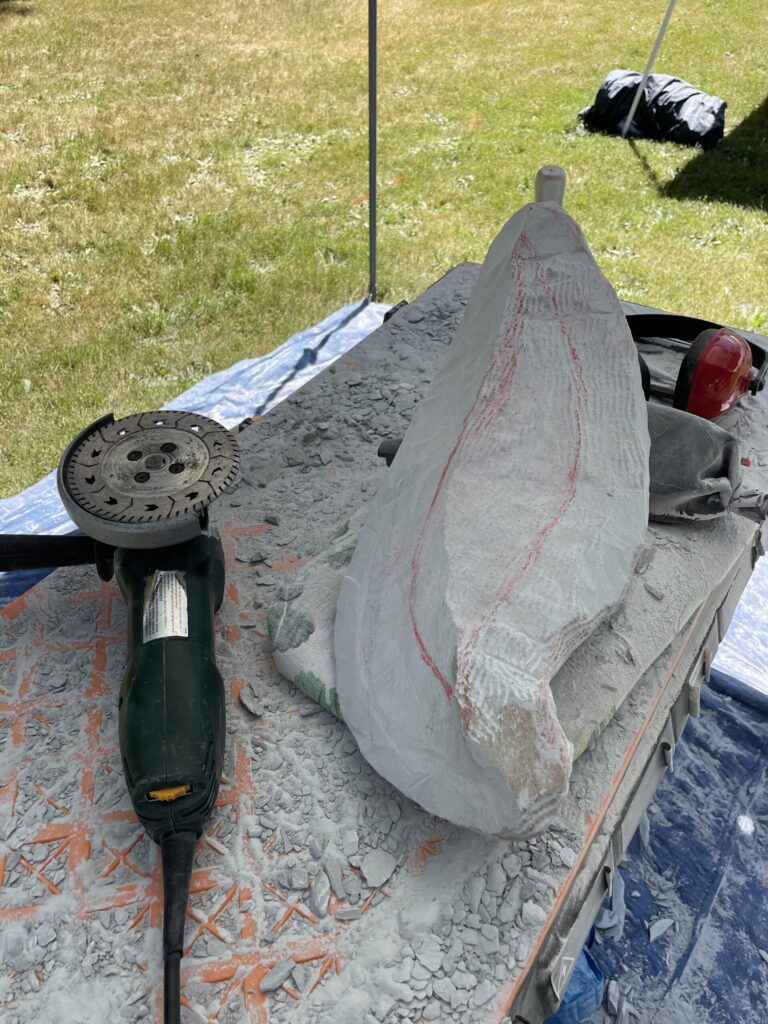 Nest I worked on a piece of marble that I was told was alabaster. Once I start trying to work it with an air hammer I quickly realized it wasn’t alabaster and my guess that it was marble was confirmed. It’s sort of an odd shape and I am still figuring out some details but here is an image of the before and where it is currently.